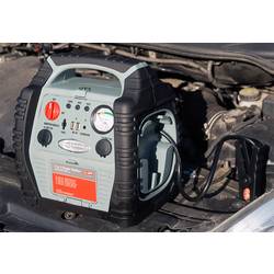 | Vlastnosti startovacího zařízení | 2x výstup 12 V · indikátor stavu nabití · kovové kleště · kompresor · SOS signalizační kontrolka · 2x USB konektor · pracovní osvětlení |