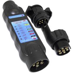Tento tester s LED diodou otestuje všechny funkce osvětlení vozidla – zásuvky i zástrčky. Ukazatel LED diody zobrazí každé problematické připojení. Přezkouší všechny 7 - pólové zásuvky a konektory a pomocí dvou dodávaných adaptérů i všechny 13 - pólové zásuvky a konektory v 7 - pólové funkci. Oba adaptéry je možné použít i v případě 13 - pólového připojení a 7 - pólového přívěsu a obráceně. Odběr proudu pomocí 9 V blokové baterie (objednejte samostatně).