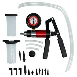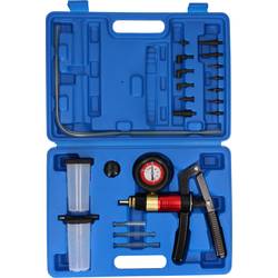 Sada brilliant TOOLS PRO vakuové vývěvy BT581500 je vhodná pro přezkoušení tlakových a podtlakových systémů. S adaptéry, které jsou součástí dodávky, lze zkontrolovat např. vakuové vývěvy, řídicí ventily pro / a podtlakové nádoby, nastavení turbodmychadla na funkci, těsnění, potřebné rozsahy tlaku a nastavení min/MAX. Pro odvětrání menších kruhů brzdových a spojovacích systémů je čerpadlo také vhodné.