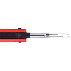 K odbornému a nedestruktivnímu odblokování kontaktůpro výrobce AMP Tyco 4,8 asyPro provedení zástrčky plochý konektorPro šířky konektorů 4,8 mmOdemknutí na principu 3Ochranný třmen pro ochranu čepelí a pro zamezení zraněnímNástrojové hroty z velmi kvalitní pružinové oceli
