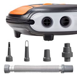 - Režim nafukování, nafukování a vyprazdňováníRychlé nahuštění: Nafoukne 13" pneumatiku za cca 2 minuty Pro provoz bezdrátově nebo pomocí kabelu o délce 3,5 m.