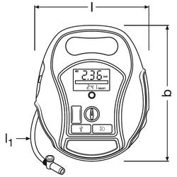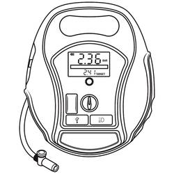 | Vlastnosti kompresoru | automatické vypnutí · digitální displej · s pracovní lampou · s funkcí powerbanky · nabíjecí, 12 a 230 V · úložný box / taška |