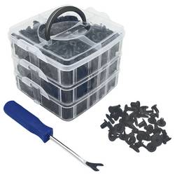 - 16 typů úchytů z kvalitního plastu, odolné vůči korozi. Vhodné pro otvory o velikosti 6-10 mm. Pro použití např. na dveřní obložení, ozdobné lišty, nárazníky, kapoty, blatníky. Součástí dodávky je pákový nástroj, který lze snadno vyjmout a odpojit. Plastový box s 16 přihrádkami umožňuje snadné a organizované skladování, držadlo pro bezpečný transport.