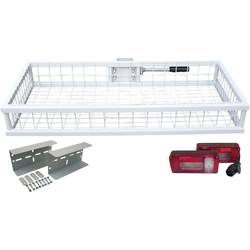Zadní nosič s rychlospojkou - pro přepravu v re4 a výřezech, pro montáž na závěsné zařízení přívěsu, rychlé upevnění nebo odbočení pomocí jednopákové rychlospojky, přivařený dvojitý rám, hmotnost pouze cca 11 kg, rozměry cca D x Š x v = 105x4x16 cm, práškově lakovaný šedá. S podrobným návodem k montáži.