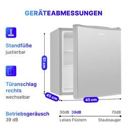 S chladičem R600a a spotřebou energie pouze 0,219 kWh za 24 hodin nebo 80 kWh za rok je tato mini chladnička nejen výkonná, ale také ekologická a energeticky úsporná. Rozměry 51 cm (v) x 45 cm (š) x 45 cm (h) jsou dostatečně kompaktní, aby se vejde téměř kamkoli, aniž by se přitom vzdal výkonu a kapacity.