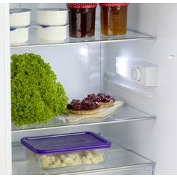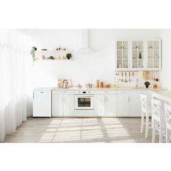 Přístroj má tři odkládací plochy z bezpečnostního skla, šuplík, tři odkládací plochy dveří a LED osvětlení. Barva je bílá. Hladina hluku je 37 dB. Klimatická třída zahrnuje N, ST a T. rozměry činí 56 cm v šířce, 59,8 cm v hloubce a 84,5 cm ve výšce.
