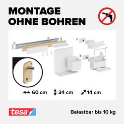 S tímto stolním organizérem TESA® a s jeho modulárními kombinovanými sadami budete mít možnost vytvořit tiší kuchyně. Snadné připevnění díky inovativnímu klopovému řešení, bez vrtání. K dostání v kombinované sadě s, M, L a XL a také jako samostatná souprava pro speciální aplikace. Kombi a single set mohou být libovolně kombinovány.