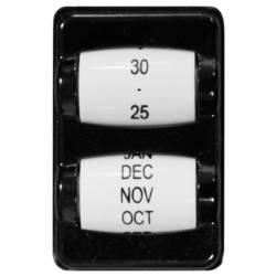 - Ruční počítadlo může být nastaveno dvěma otočnými kolečkami (měsíc a den) a zobrazuje datum pro další výměnu patrony
