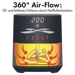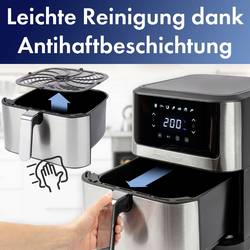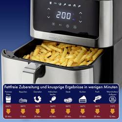 LED displej a dotykové ovládání zajišťují intuitivní ovládání, zatímco plynule regulovatelné teploty od 80 °C do 200 °C. Horkovzdušná fritéza zabraňuje kouři a nepříjemnému zápachu a současně šetří čas a energii.