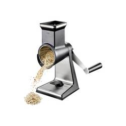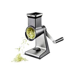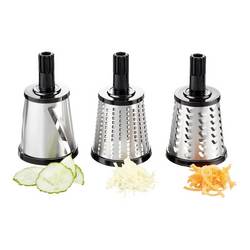 Multifunkční bubnová struhadla se třemi mimořádně ostrými kapkami LaserCut promění zeleninu, ovoce, jedlé kaštany, sýry, čokoládu a ořechy v jemné vločkách nebo hrubé strouhání. Snadno a bezpečně zvládnou i tenké plátky okurky nebo brambory. Z kuželových bubnů může snadno vyklouznout tření nebo odstřižky. Bezpečné odložení zajišťuje praktické zdvihátko. Díky extra ohmému stojanu se nachází také vyšší mísy pod bubnovou strunou. Stabilní stojan umožňuje přísavnou podložku, kterou lze alternativně upevnit na pracovní nebo stolní desky o tloušťce až 8 cm.