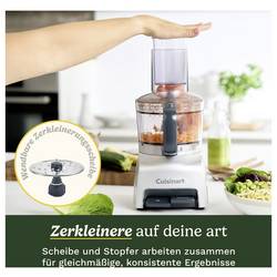 Jednoduchá obsluha: Obsluha jedním tlačítkem umožňuje rychlou a snadnou přípravu. Integrované pěchovače bezpečně a rovnoměrně přidávají přísady do čepelí - pro rovnoměrné výsledky při řezání a strouhání.