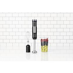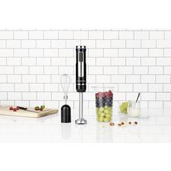 GourmetMaxx tyčový mixér 200 W napájeno bateriemi, s mixovacím náčiním, sada metel na šlehání, včetně mixovací násady černá, stříbrná