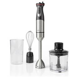 Udělejte si svou kuchyň kompletně s touto kompaktní, ale kompletní sadu mixéru 4 v 1, která obsahuje tyčový mixér a sekáček, například na květinové uhlí, metlu pro míchání mléka do kapuccina nebo vajec pro tavení a praktickou nádobu pro mixování. Ještě nikdy nebylo tak snadné připravit polévky, omáčky a smoothie. Tato sada mixů je rychlejší, pohodlnější a vyžaduje méně čištění než mixér. Disponuje hřídelí a čepelí z nerezové oceli a různými rychlostními stupni, se kterými můžete nasekávat i ty nejnáročnější druhy ovoce a zeleniny.