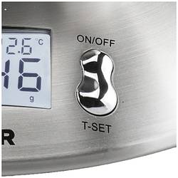 - Kuchyňská váha váží přesně od 1 g do 5 kgPodstavec a míchací mísa v elegantním nerezovém designuDigitální displej s podsvícením, včetně ukazatele teploty a kuchyňských hodinek