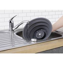 Čistý, skládací, prostorově úsporný: Chytré příslušenství pro mikrovlnnou troubu. Skládací silikonová mikrovlnná trouba KitchBo zajišťuje nejen to, že vnitřní mikrovlnná trouba je chráněna před nepříjemnými elektrickými stříkačkami, ale díky magnetům na horní straně ji lze také snadno a prostorově úsporně uložit přímo do mikrovlnné trouby. Jednoduše jej smontujte a připněte na vnitřní mikrovlnnou troubu - a je hotovo. Stejně praktický je i chytrý ventilační systém: Pomáhá rovnoměrně rozzáří potraviny a je ideal – zcela bez ztráty vlhkosti nebo rozmělnění potravin kvůli nadměrnému vývoji páry. Kromě toho se dá velmi snadno vyčistit poklop do mikrovlnné trouby. Pro čistou mikrovlnnou troubu: Silikonová, skládací mikrovlnná trouba KitchBo. Opakovaně použitelná a bez BPA.