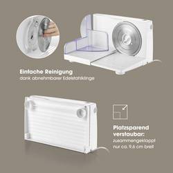 Kotouč je rychle, snadno a čistě nařezaný. Skládací univerzální kráječ GourmetMaxx vám otevře nový svět možností v kuchyni. Univerzální kráječ řeže mnoho potravin spolehlivě - od tenkých 1,5 až po cca 15 mm, které lze plynule nastavit pomocí otočného regulátoru. Nezáleží na tom, zda jde o chléb, uzeniny, sýr či maso, zelenina nebo mnoho jiných potravin: ostrá čepel z nerezové oceli umožňuje vždy čisté a přesné řezy. Praktická ochrana prstů umožňuje snadnou manipulaci - zejména při stříhání jemným skel. Také čištění je klacky, protože čepel z nerezové oceli lze velmi snadno vyjmout a vyčistit. Snadno se odvíjí od toho, že se tento kráječ velmi snadno ovládá, zatímco čtyři protiskluzové nožky zajišťují bezpečné postavení elektrického přístroje. To vám poskytne praktický všestranný přístroj do kuchyně - pro mnoho kreativních nápadů. Univerzální kráječ GourmetMaxx.