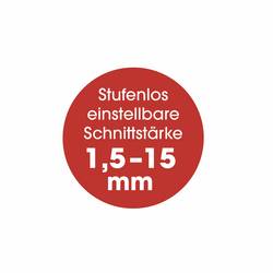 Plynule nastavitelná tloušťka řezu od 1,5 do 15 mm