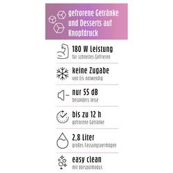 A to nejlepší: Čištění je velmi snadné! Díky režimu předplachování, odnímatelným dílům a komponentám vhodným do myčky zůstává více času. Zařízení GourmetMaxx FreezeUp Slush LED je ideálním pomocníkem pro kreativní nápoje a dezerty podle chuti po celý rok. FreezeUp - protože žádný požitek z ročního období. Pro řádný provoz zařízení je nezbytné, aby kapaliny, které mají být zpracovány, měly dostatečně vysoký obsah cukru (cca 5 g/100 ml). Pro kapaliny obsahující alkohol až 16 % obj.