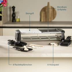 - Vychutnejte si společné grilování, bláto a roztavení sýrů, přičemž každý si může připravit svůj vlastní oblíbený soudElegantní černý kryt s integrovaným termostatem pro optimální teplotuVelká grilovací plocha 42 x 21 cm, vhodná pro 8 osob, 8 pánviček a škrabkaRychlý ohřev díky výkonu 1300 W.Snadné čištění díky částem, které lze mýt v myčce