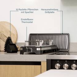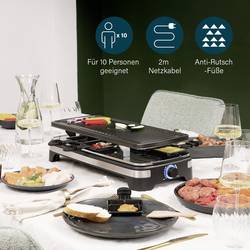 Raclette Princess 162650 10 je vhodný pro 10 osob, takže si můžete vychutnat nádherný večer s celou rodinou. Je vybaven termostatem, takže můžete snadno nastavit teplotu. Odnímatelná grilovací deska má kvalitní nepřilnavý povrch, který zajišťuje snadné čištění po použití. Díky multifunkčnímu raclette 10 můžete grilovat i raclette - zaručeně je večer!