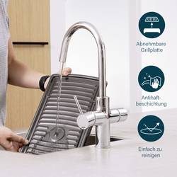 - Délka kabelu: 2 mPlynule regulovatelný termostatTermostat se světelným kroužkemOdnímatelná grilovací deskaProtiskluzové nožky