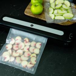 S válečky Wilfa VR28300 můžete potraviny zapečetit ve všech vakuovacích přístrojích. Ve vakuových sáčcích je možné potraviny bez problémů skladovat a zůstávají výrazně déle čerstvé. Role fólie 28 cm je široká a její velikost je 3 m, kterou lze libovolně nastavit. Do sáčků můžete uložit mnoho různých produktů jako např. Maso, ryby nebo také ovoce a zelenina. Sáčky jsou díky své struktuře jemných žeber obzvlášť pevné a odolné proti roztržení. To umožňuje bezstarostné použití vakuových potravinářských sáčků a umožňuje snadné skladování přísad. Díky vakuování zůstane zachována čerstvost po delší dobu. Kromě toho můžete s sáčkami provádět ideal Sous Vide garen (přitom zůstanou zachovány důležité vitaminy, chutná aromata a živiny).
