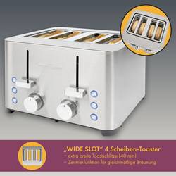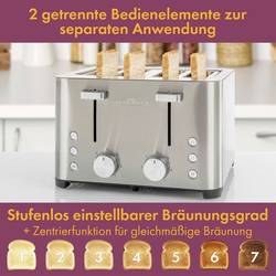 - Topinkovač na 4 plátky pro toustyNastavitelný stupeň pečeníPlášť z nerezové oceliWide slot - mimořádně široké otvory na pečivo