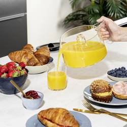 Odšťavňovač má 3-cestnou lisovanou pozici, přičemž neutrální poloha slouží jako funkce stop-kapání. Vytlačte dolů výlevka a vlijte šťávu přímo do skla - ideal, když potřebujete pouze jedno nebo dvě skla! Vylitím lze vylisovanou šťávu protéct i směrem nahoru do 1litrové kúry. Naplňte nádobu čerstvým šťávou a servírujte ji přímo na celou rodinu. Pomocí přibaleného víka můžete šťávu skladovat i několik dní v lednici. I když máte málo času, máte čerstvě vylisovanou šťávu Parat!