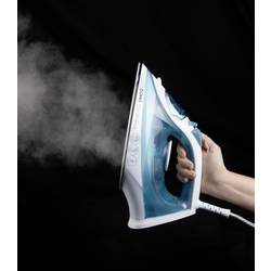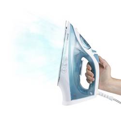 Snadné žehlení: Pára 40 g/min, 320 ml nádržka na vodu. Keramická žehlicí plocha pro hladké klouzání. Mechanická regulace teploty pro všechny textilie. Nastavitelné množství páry. Včetně samočištění, parního rázu, vertikálního napařování a rozprašování.