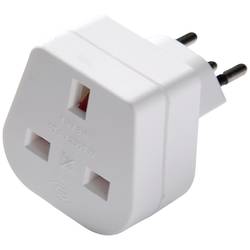 Cestovní adaptér se zásuvkou s ochranným kontaktem ze zásuvky typu J na zásuvku typu G s vestavěnou závěrkou a pojistkou.