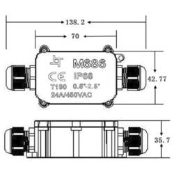 Vhodné M20 kabelové průchodky (průřez 5 - 12 mm) jsou pevně integrovány do kabelové zásuvky a zajišťují dodatečnou stabilitu. Součástí dodávky jsou i odpovídající redukce a zašroubování pro průřezy vodičů od 0,5 do 2,5 mm². Celkově má pouzdro výstup a vstup.