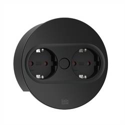 Kovová krytka TWIST 2, matná, podobně RAL9005, 30GE, 2x zásuvka s ochranným kontaktem, černá, 2,0 m H05VV-F 3G1,5 m², černá s dutinkami a přiložená montážní zástrčka s ochranným kontaktem v kartonu