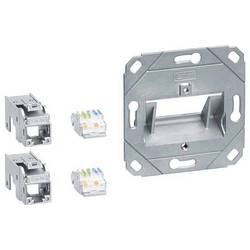 Připojovací modul 2x RJ45, Cat.6a, pro centrální tabuli UAE, 2násobný, hfr. Sada se skládá z montážního rámu pro montáž dvou modulárních přípojných jednotek s maximální šířkou modulu 14,7 mm. Dva modulární připojovací jednotky RJ45, kategorie 6A / třída EA podle DIN EN50173-1, až 500 MHz, 8 pólové provedení, vhodné pro pevné vodiče (AWG26/1 - AWG22/1) a flexibilní (AWG26/7 - AWG22/7). Pro montáž do serializovatelných krabic přístrojů pro parapetové lišty, se sníženou montážní hloubkou pro zarovnání s obrysem parapetní lišty. Pro použití se středovými kotouči UAE, 2x s rozměry 55 x 55 mm.