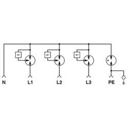Svodič bleskového proudu, dle typu 1 / třídy I, pro 3 3fázové napájecí sítě, s kombinovaným proudem N a PE (L1, L2, L3, Pen). Pro vyrovnání potenciálu blesků podle třídy ochrany III a IV. Pro montáž na 40 mm přípojnicové systémy.