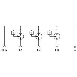 Svodič bleskového proudu, dle typu 1 / třídy I, pro 3 3fázové napájecí sítě, s kombinovaným proudem N a PE (L1, L2, L3, Pen). Vhodný pro vyrovnání potenciálu v zařízeních bez vnější ochrany blesku s i bez napájení z přívodního vedení. Pro montáž na 40 mm přípojnicové systémy.