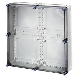 Pouzdro pro montáž kombinací přístrojů s elektrickou zástrčkou do 630 a nebo jako samostatného pouzdra. Z kvalitního polykarbonátu s ochrannou izolací. Průchodky stěnou s velkými otvory pro elektrické spojení pouzdra mezi sebou. Kabelová průchodka na všech zdech krytu přes metrické výkroje nebo montážní lanku. Pouzdro pro upevnění na zeď i přes vnější úchyt nebo montážní lištu. Prázdné pouzdro s průhledným víkem. Montážní rozměry B 575 x H 575 x T 150 mm pro montáž přístrojů na montážní desku nebo DIN lištu. Max. Montážní hloubka při vestavěné montážní desce 146 mm, při vestavné nosné liště 135 mm. Uzávěry víka s možností ovládání nástroje.