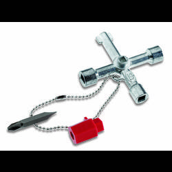 Univerzální klíč ke skříňovému rozvaděči z kovu, pro všechny běžné rozvodné skříně. Malé rozměry, nízká hmotnost, s adaptérem pro" (1/4") bity. Se čtyřhranem pro klíč pro Radiátorový odvzdušňovací ventily a otočný bit pro šrouby s drážkou 1,0 x 7,0 mm a/nebo křížové šrouby PH2.