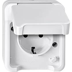Merten 1násobné spínání ve vlhkých místnostech kompletní sada zásuvka s ochranným kontaktem se sklopným víkem AQUASTAR polární bílá 4074943 1 ks