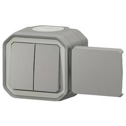 Multifunkční spínač do vlhkého prostředí Plexo pro montáž na omítku – volitelně dvojitý přepínač/tlačítko nebo přepínač/tlačítko nebo přepínač 10 AX s tlačítkem 10 a, zástrčkovými svorkami (SL), IP 55, IK 08, barva: Šedá