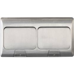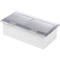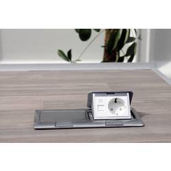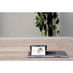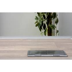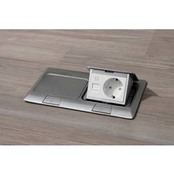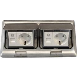 Vestavná zásuvka na stěnu a podlahu se dvěma zásuvkami s ochranným kontaktem a se zvýšenou ochranou proti dotyku a se dvěma zásuvkami pro datové zásuvky RJ45 8-pólový CAT5 se samouzavíracím protiprachovým krytem. Pozinkovaná vestavná zásuvka 200 x 100 x 57 mm. Kryt z hliníkové slitiny, broušený, 220x120 mm. Lze přejíždět. S připojením 1 až 2,5 m².