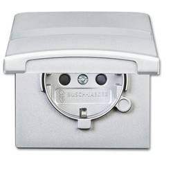 Pole pro popis 66,7 x 10 mm. Se zvýšenou ochranou proti dotyku. Součástí dodávky je těsnicí kroužek, IP 44 Pouze ve spojení s rámečkem Allwetter 44®.se zásuvkovým připojením.2pólová (2 P + E)