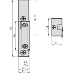 ET 93 - Effeff 19E elektrický otvírač dveří, s mechanickým odblokováním, použití pro 6-12 v, DIN vlevo, ploché provedení: 16,5 mm, asymetrické