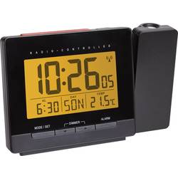 - Projekce času (DCF), vnitřní teploty a symbol alarmu (při aktivovaném alarmu) na stěnu nebo strop