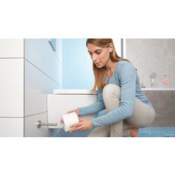 S držákem na toaletní papír TESA ® MOON můžete pohodlně a rychle uložit náhradní role v blízkosti rukojeti. Pohodlně je v tomto nadčasovém elegantním badaccessoire připevnivá i montáž. Místo vrtání a nevyhnutelně poškozování stěn můžete použít polepivý roztok. Skládá se v podstatě z upevňovacího adaptéru a lepidla, které je po vytvrdnutí plně zatížitelné. Nepotřebujete žádné další nářadí. Držák toaletního papíru pro náhradní role lze kdykoli bez problémů odpojit a znovu použít pomocí nového adaptéru (BK20).
