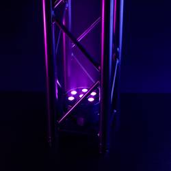 - 7 x Quad-Color LED PAR reflektor 4 W s výstupem světla 1350 lmVynikající míchání RGBW barevKonfigurace pomocí 4 tlačítek a OLED displeje