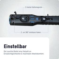 Robustní pouzdro je ergonomicky tvarované. Pogumovaná rukojeť zajišťuje potřebnou přilnavost při náročné práci. Díky mnoha praktickým objímkám je IL300R absolutní všestranný výrobek, ideal pro univerzální uživatele. Má tedy lampu otočnou o 180° a 8 stupně aretovatelnou rukojeť pro flexibilní nastavení světla. Dva výklopné háčky otočné o 360° na zadní straně skříně poskytují další možnosti upevnění. Dva magnety slouží k upevnění a uspořádání světel na kovové předměty. Díky tomu zůstanou obě ruce volné pro práci v dílně, na staveništi nebo při montážních pracích.