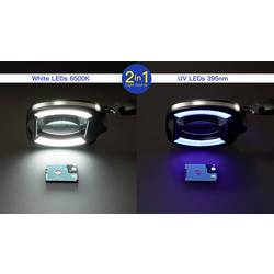Výkonná a energeticky úsporná lupa s osvětlením v provedení 48 SMD LED. Velmi kvalitní skleněná čočka s 2,25násobným zvětšením (5 dioptrií) se skvěle hodí pro filigránsky jemné práce. Nastavitelné rameno lupy umožňuje pracovat v mimořádně velkém prostoru. Odolná kovová konstrukce s rukojetí umožňuje snadné nastavení lampy.