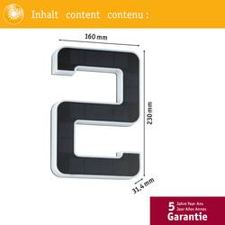Svítící bod 2 je sám o sobě nebo s dalšími číslicemi perfektní osvětlení čísla domu. Díky solárnímu napájení ji lze připevnit na stěnu domu zcela nezávisle na proudu. Přes den je neviditelná solární část nabíjena slunečním světlem, v noci je dekorativní číslo nepřímo osvětleno.