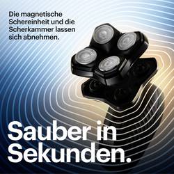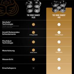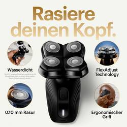 The Dome Shaver™ Plus šetrně a důkladně proholí, protože je vybaven technologií FlexAdjust, ultratenkými kryty čepelí a čtyřmi nůžkami. Holicí díly z nerezové oceli SkinSafe® klouzají přes nerovnosti a kontury a zůstávají vždy blízko u hlavy* Díky výkonu 9 500 ot./min dosahují čtyři rotující prvky maximální rychlosti pro maximální účinnost. Přístroj se rychle a snadno čistí, protože holicí jednotka a vlasová komora jsou navzájem magneticky propojeny.