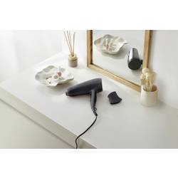 Dvojnásobné množství iontů navíc pomáhá vytvářet lesklé vlasy bez tzv. frize, protože ionty neutralizují stávající statický náboj a chrání povrch vlasů. Externí iontový výstup nad tryskou přitom chrání ionty před horkem vysoušeče vlasů a umožňuje tak efektivní technologii pro péči o vlasy.